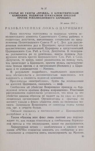 Главная Октябрьская революция и установление советской власти в республиках... 1917 год в Царицыне Документы Статья из газеты «Правда» о клеветнической кампании, поднятой буржу...