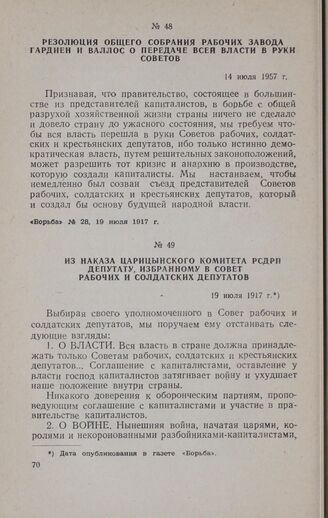 Резолюция общего собрания рабочих завода Гардиен и Валлос о передаче всей власти в руки Советов. 14 июля 1957 г. // «Борьба» № 28, 19 июля 1917 г.