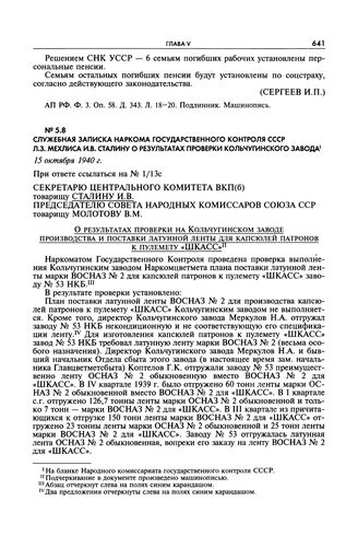 Служебная записка наркома государственного контроля СССР Л.З. Мехлиса И.В. Сталину о результатах проверки Кольчугинского завода. 15 октября 1940 г. // АП РФ. Ф. 3. Оп. 58. Д. 343. Л. 21-26. Подлинник. Машинопись.