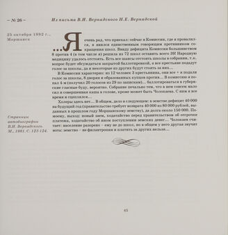Из письма В.И. Вернадского Н.Е. Вернадской. 25 октября 1892 г., Моршанск // Страницы автобиографии В.И. Вернадского. М., 1981. С. 123-124.