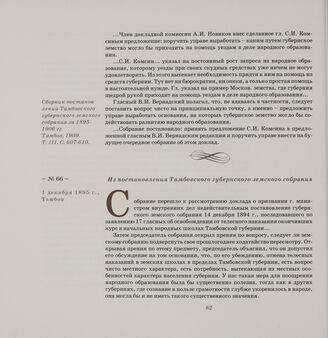 Из постановления Тамбовского губернского земского собрания. 1 декабря 1895 г., Тамбов // Сборник постановлений Тамбовского губернского земского собрания за 1895-1906 гг. Тамбов, 1909. Т. III. С. 642-645.