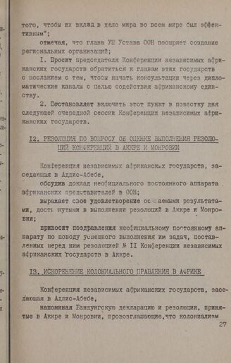 Вторая конференция независимых государств Африки. Аддис-Абеба, 14-24 июня 1960 года. Резолюция по вопросу об оценке выполнения резолюций конференций в Аккре и Монровии