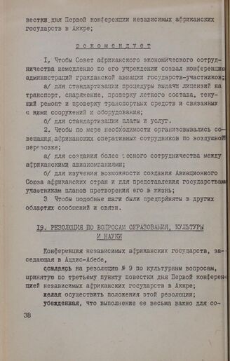 Вторая конференция независимых государств Африки. Аддис-Абеба, 14-24 июня 1960 года. Резолюция по вопросам образования, культуры и науки