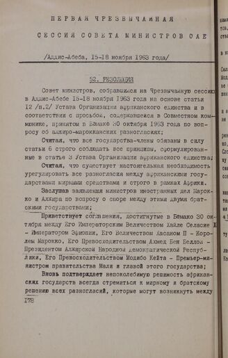 Первая чрезвычайная сессия Совета министров ОАЕ. Аддис-Абеба, 15-18 ноября 1963 года. Резолюция. Принято 18 ноября 1963 г.