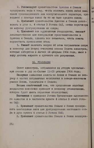 Вторая чрезвычайная сессия Совета министров ОАЕ. Дар эс-Салам, 12-15 февраля 1964 года. Резолюция [о северо-восточном районе Кении]. Принята 15 февраля 1964 г.
