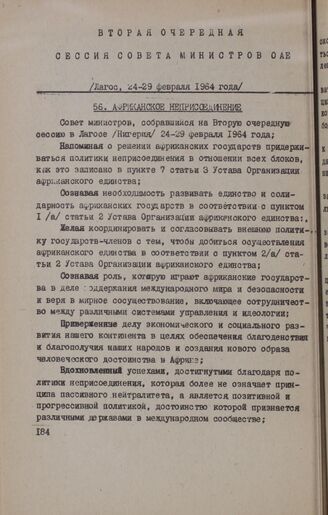 Вторая очередная сессия Совета министров ОАЕ. Лагос, 24-29 февраля 1964 г. Африканское неприсоединение