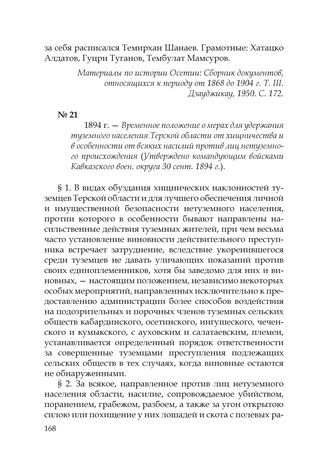1894 г. — Временное положение о мерах для удержания туземного населения Терской области от хищничества и в особенности от всяких насилий против лиц нетуземного происхождения (Утверждено командующим войсками Кавказского воен. округа 30 сент. 1894 г.)