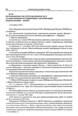 Постановление СНК СССР и ЦК ВКП(б) № 2012 «О мероприятиях по подготовке к эксплуатации канала Москва - Волга». 7 сентября 1935 г.