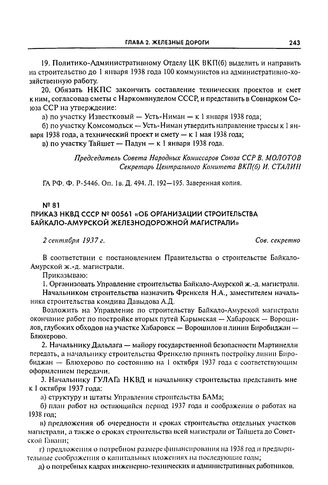 Приказ НКВД СССР № 00561 «Об организации строительства Байкало-Амурской железнодорожной магистрали». 2 сентября 1937 г.
