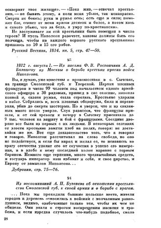 1812 г. августа 1. — Из письма Ф. В. Ростопчина А. Д. Балашову из Москвы о борьбе крестьян против войск Наполеона // Дубровин, стр. 75-76.