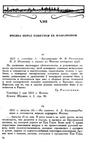 1812 г. августа 31. — Из записок А. Д. Бестужева—Рюмина о готовности народа защищать Москву // Р. А., 1896, № 6, стр. 358.