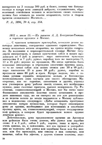 1812 г. июля 15. — Из записок А. Д. Бестужева—Рюмина о торговле оружием в Москве // Р. А ., 1896, № 6, стр. 349.
