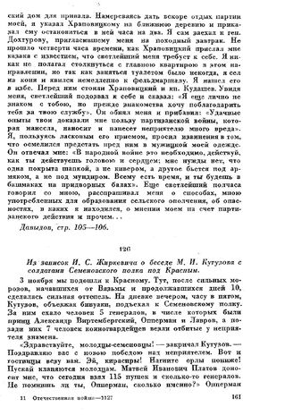 Из записок И. С. Жиркевича о беседе М. И. Кутузова с солдатами Семеновского полка под Красным // Р. Ст., 1874, № 8, стр. 659-661.
