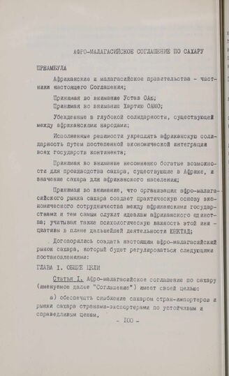 Афро-малагасийское соглашение по сахару. Тананариве, 27 июня 1966 г.