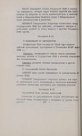 Резолюции конференции глав государств и правительств Общей афро-малагасийской организации. Тананариве, 25-27 июня 1966 г. Резолюция № 18. О коллоквиуме по планированию