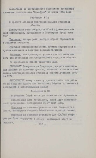 Резолюции конференции глав государств и правительств Общей афро-малагасийской организации. Тананариве, 25-27 июня 1966 г. Резолюция № 22. О проекте создания Многонациональных страховых обществ
