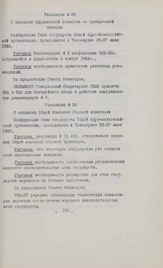 Резолюции конференции глав государств и правительств Общей афро-малагасийской организации. Тананариве, 25-27 июня 1966 г. Резолюция № 25. О создании Африканской комиссии по гражданской авиации // Résolution de la Conférence des Chefs d'Etat et de Gouvernement de l'Organisation Commune Africaine et Malgache. Tananarive, 25-27 juin 1966. Edité par le Secrétariat Général de l'OCAM. B. P. 437 Yaounde.