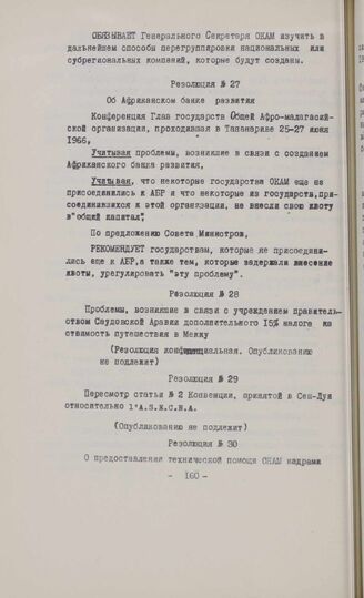 Резолюции конференции глав государств и правительств Общей афро-малагасийской организации. Тананариве, 25-27 июня 1966 г. Резолюция № 28. Проблемы, возникшие в связи о учреждением правительством Саудовской Аравии дополнительного 15% налога на стоимость путешествия в Мекку // Résolution de la Conférence des Chefs d'Etat et de Gouvernement de l'Organisation Commune Africaine et Malgache. Tananarive, 25-27 juin 1966. Edité par le Secrétariat Général de l'OCAM. B. P. 437 Yaounde.