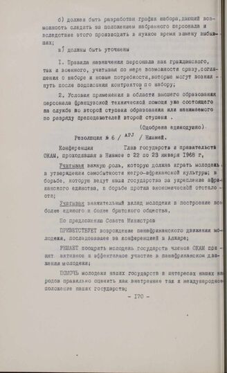 Основные резолюции конференции Глав государств и правительств Общей Афро-Малагасийской организации. Ниамей, 22-23 января 1968 г. Резолюция № 6