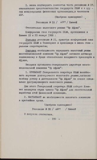 Основные резолюции конференции Глав государств и правительств Общей Афро-Малагасийской организации. Ниамей, 22-23 января 1968 г. Резолюция № 35. О вопросах статистики