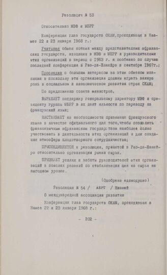 Основные резолюции конференции Глав государств и правительств Общей Афро-Малагасийской организации. Ниамей, 22-23 января 1968 г. Резолюция № 54. О международной ассоциации развития // Nation Nouvelles Revue de l’OCAM. № 15, mars 1968.