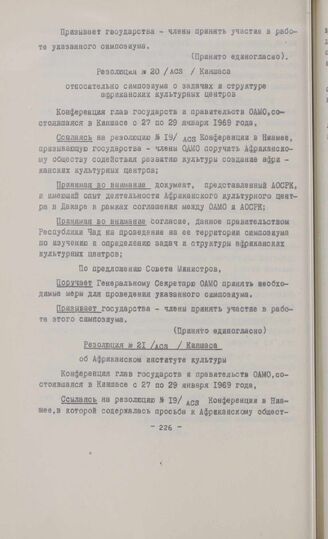 Резолюции конференции глав государств и правительств общей Афро-малагасийской организации. Киншаса, 27-29 января 1969 г. Резолюция № 21. Об Африканском институте культуры