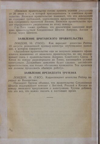 Заявление британского правительства. Лондон, 10 [августа 1945 г.]