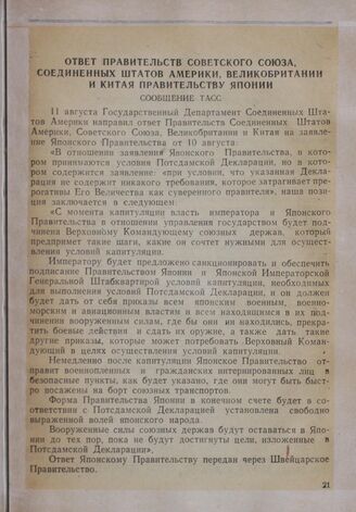Ответ Правительств Советского Союза, Соединенных Штатов Америки, Великобритании и Китая Правительству Японии. Сообщение ТАСС