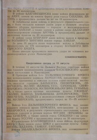 От Советского информбюро. Оперативная сводка за 11 августа [1945 г.]