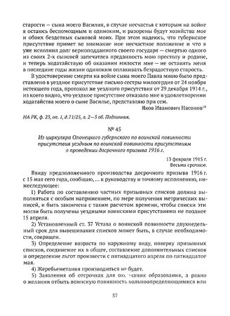 Из циркуляра Олонецкого губернского по воинской повинности присутствия уездным по воинской повинности присутствиям о проведении досрочного призыва 1916 г. 13 февраля 1915 г. // НА РК, ф. 23, оп. 1, д. 71/17, л. 12-12 об. Отпуск.