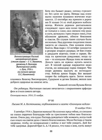 Письмо М.А. Костеникова, опубликованное в газете «Олонецкая неделя». 23 ноября 1914 г. // Олонецкая неделя. 1914. 23 ноября.