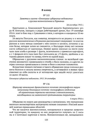 Заметка в газете «Олонецкие губернские ведомости» о русских военнопленных в Германии. 24 сентября 1915 г. // Олонецкие губернские ведомости. 1915. 24 сентября.