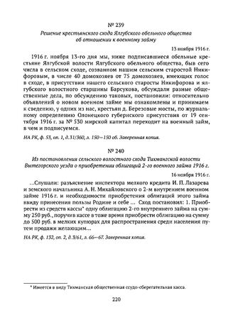 Решение крестьянского схода Ялгубского обельного общества об отношении к военному займу. 13 ноября 1916 г.