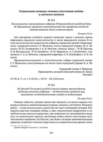 Из доклада Олонецкой уездной земской управы чрезвычайному уездному земскому собранию — об обеспечении семейств лиц, призванных на действительную службу по мобилизации. 29 июля 1914 г.