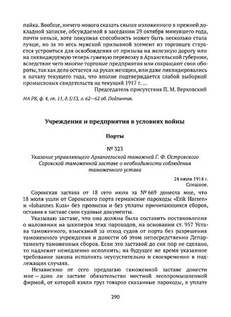 Указание управляющего Архангельской таможней Г.Ф. Островского Сорокской таможенной заставе о необходимости соблюдения таможенного устава. 24 июля 1914 г. // НА РК, ф. 277, оп. 1, д. 47/23, л. 60-60 об. Подлинник.