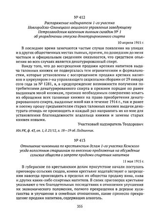 Отношение чиновника по крестьянским делам 1-го участка Кемского уезда волостным старшинам по внесению предложения на обсуждение сельских обществ о запрете продажи спиртных напитков. 11 мая 1915 г. // НА РК, ф. 176, оп. 1, д. 44/809, л. 55. Подлинник.