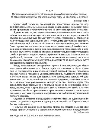 Распоряжение олонецкого губернатора председателям уездных съездов об образовании комиссии для установления такс на продукты и топливо. 3 ноября 1915 г. // НА РК, ф. 362, оп. 2, д. 1/6, л. 1, 1 об. Заверенная копия.