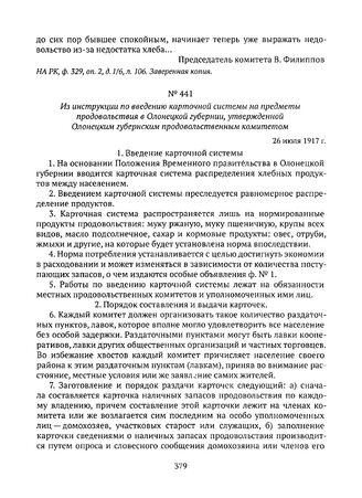 Из инструкции по введению карточной системы на предметы продовольствия в Олонецкой губернии, утвержденной Олонецким губернским продовольственным комитетом. 26 июля 1917 г. // Вестник Олонецкого губернского земства. 1917. 15 сентября.