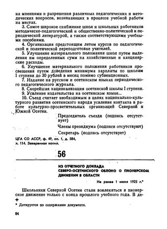 Из отчетного доклада Северо-Осетинского облоно о пионерском движении в области. Не ранее 1 июня 1925 г.