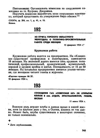 Культурное строительство в Северной Осетии: Сб. док. и материалов. Т. 1. 1917-1941 гг. — Орджоникидзе: Ир, 1974.