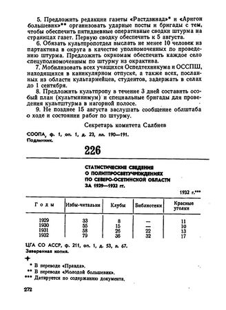 Главная Культурное строительство в Северной Осетии Культурное строительство в Северной Осетии Т.1 Документы Статистические сведения о политпросветучреждениях по Северо-Осетинс...