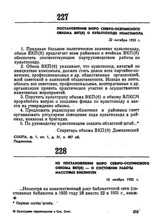 Из постановления бюро Северо-Осетинского обкома ВКП(б) — о состоянии работы массовых библиотек. 10 ноября 1933 г.