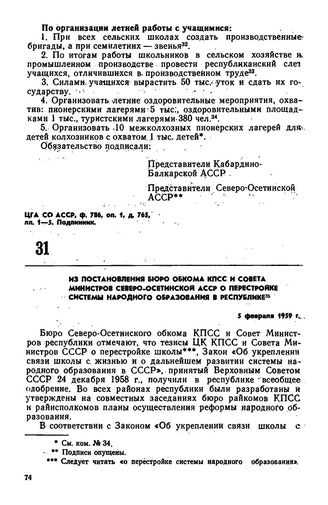 Из постановления бюро обкома КПСС и Совета Министров Северо-Осетинской АССР о перестройке системы народного образования в республике. 5 февраля 1959 г.