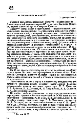 Из статьи «ГСХИ — 50 лет». 22 декабря 1968 г. // «Социалистическая Осетия», № 296, 22 декабря 1968 г.