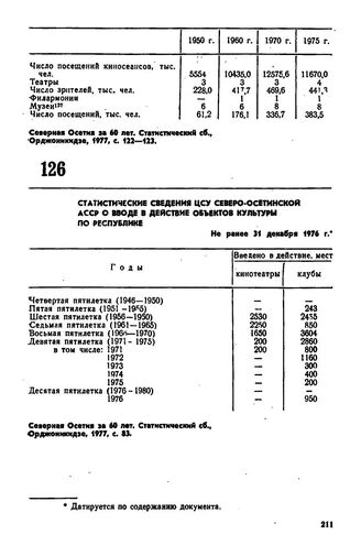 Статистические сведения ЦСУ Северо-Осетинской АССР о вводе в действие объектов культуры по республике. Не ранее 31 декабря 1976 г.