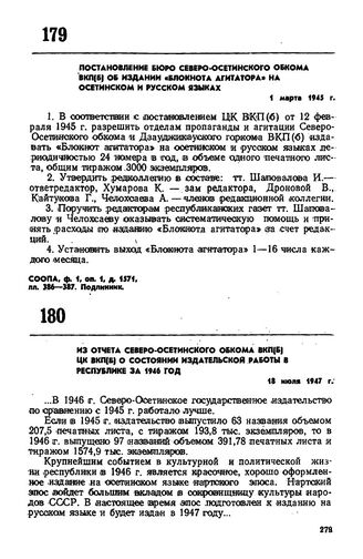 Постановление бюро Северо-Осетинского обкома ВКП(б) об издании «Блокнота агитатора» на осетинском и русском языках. 1 марта 1945 г.