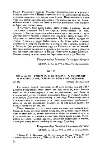 М.И. Кутузов. Т. I: Док. — М.: Воен. изд-во М-ва вооруж. сил СССР, 1950.