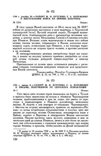 Главная Русские полководцы Кутузов М.И. Кутузов Т1 Документы 1790 г. декабря 30. — Рапорт М.И. Кутузова Г.А. Потемкину о выступл...