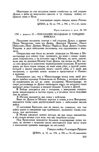 Приложение к рапорту М.И. Кутузова Н.В. Репнину. 1791 г. февраля 23. — Показания молдаван о турецких войсках