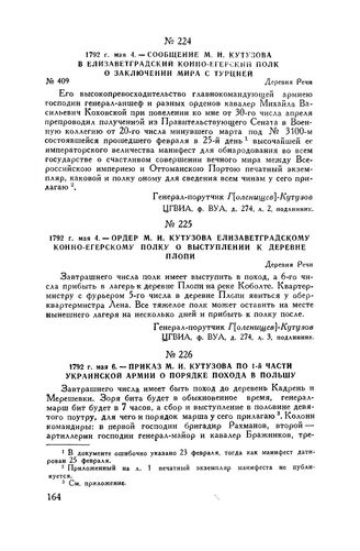 Главная Русские полководцы Кутузов М.И. Кутузов Т1 Документы 1792 г. мая 4. — Сообщение М.И. Кутузова в Елизаветградский конно-е...